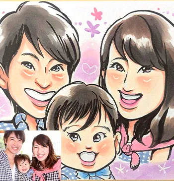 かわいい絵柄で幅広い年代の方に喜んでいただけます。 似顔絵のことなら何でもご相談ください!